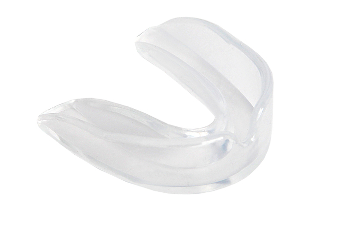 Piesa bucală de box unilaterală (cu o singură maxilară) într-o carcasă (termoplastică, culoare : transparentă). Dimensiune: 5+