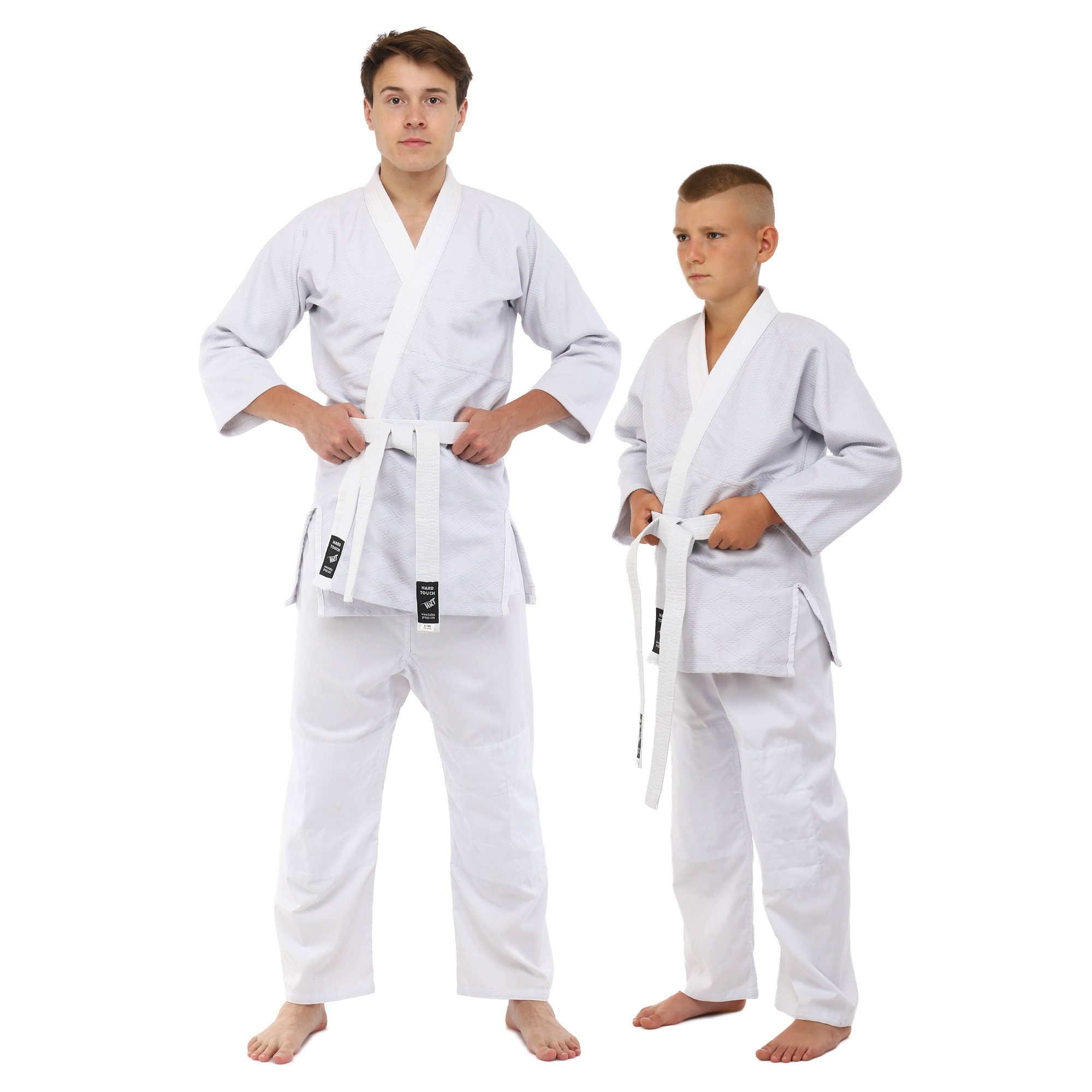 Judo kimono alb Hard Touch (bumbac-densitate 450g pe m2. Culoare: Alb. Material: Bumbac, poliester. Densitate: 450 g / m2. Pantaloni cu bandă elastică. O centură albă este inclusă. Scop: pentru practicarea jiu-jitsu și judo.