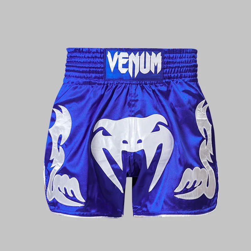 Pantaloni scurți de box și kickboxing Venum Thai, Material: poliester. Culoare: Albastru-alb. Scop: un element al echipamentului unui luptător în boxul thailandez și kickboxing.