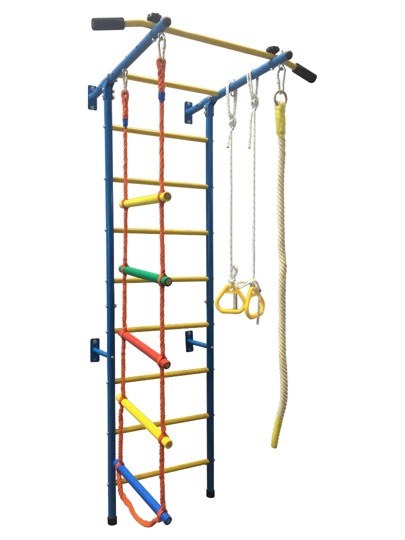 Peretele suedez are nu numai un turnichet, ci și echipamente suplimentare: scară de frânghie, inele și frânghie caracteristici Model: înălțime: 223 cm; lățimea peretelui: 109 cm; adâncime: 88 cm; Sarcină maximă: scară 100 kg; (încărcare în timpul testării complexului — 200 kg), atașamente 50 kg Greutate Greutate: 32 kg; include: bară orizontală, inele de gimnastică, frânghie, scară de frânghie.