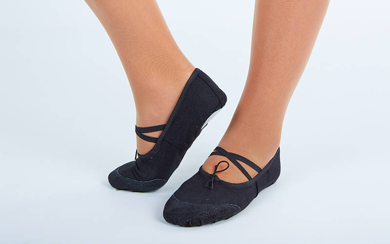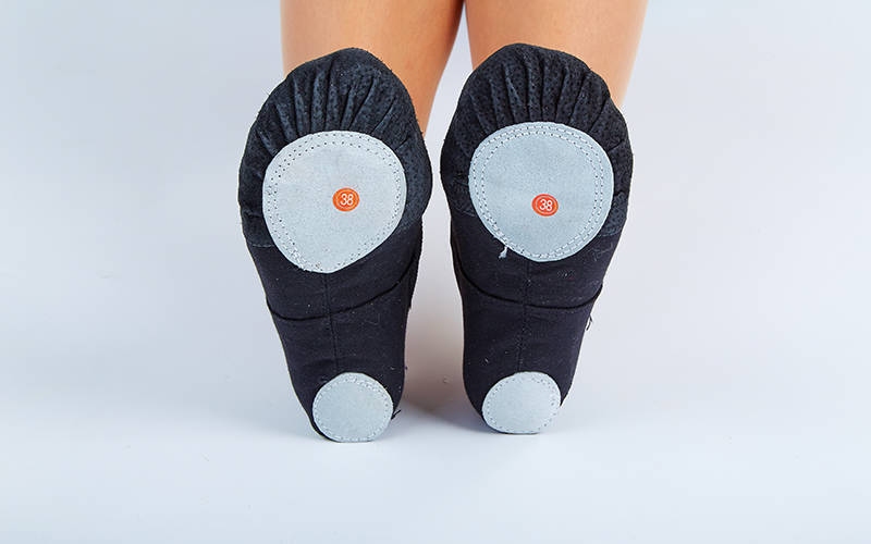 Papuci de balet bumbac negru superior, piele, talpă din piele