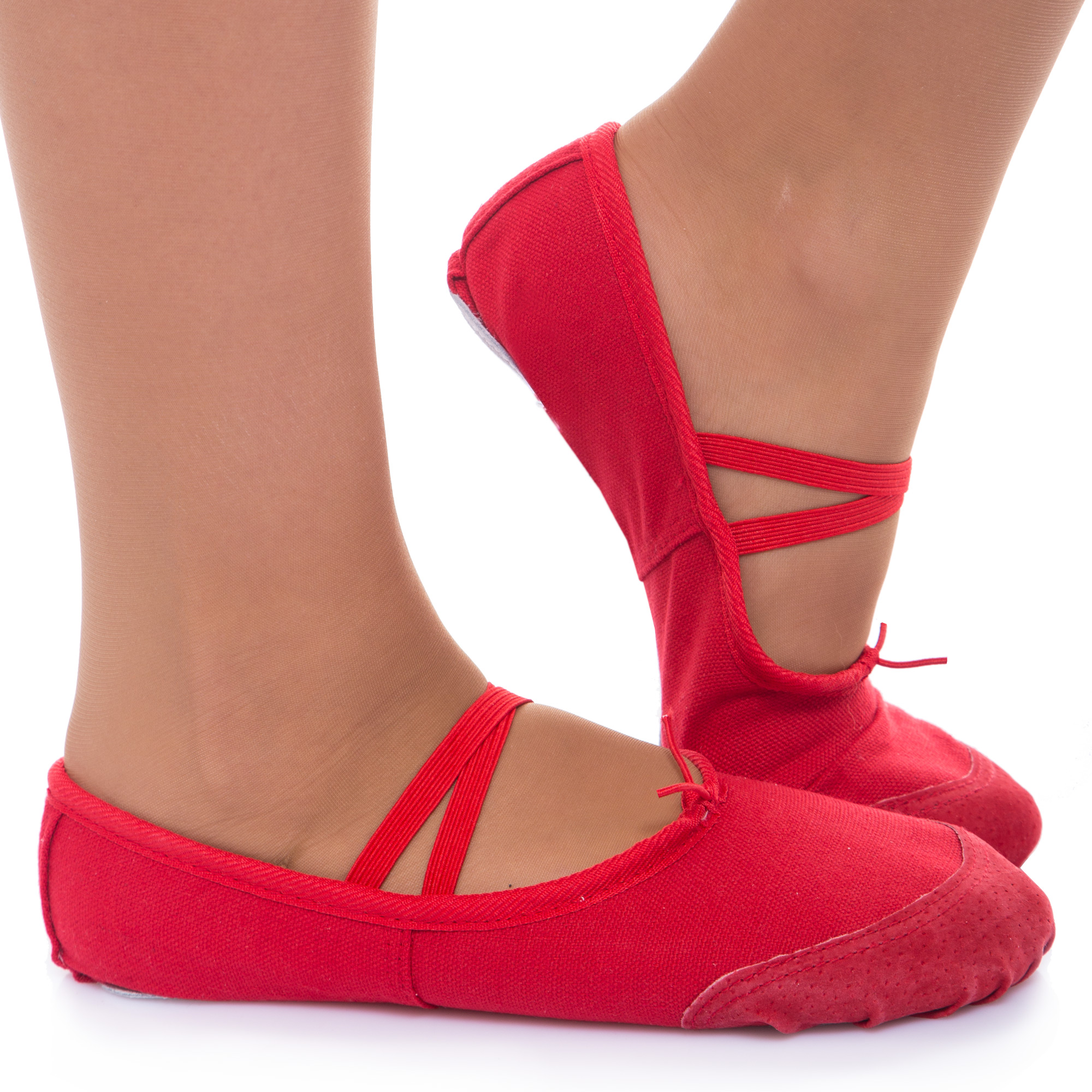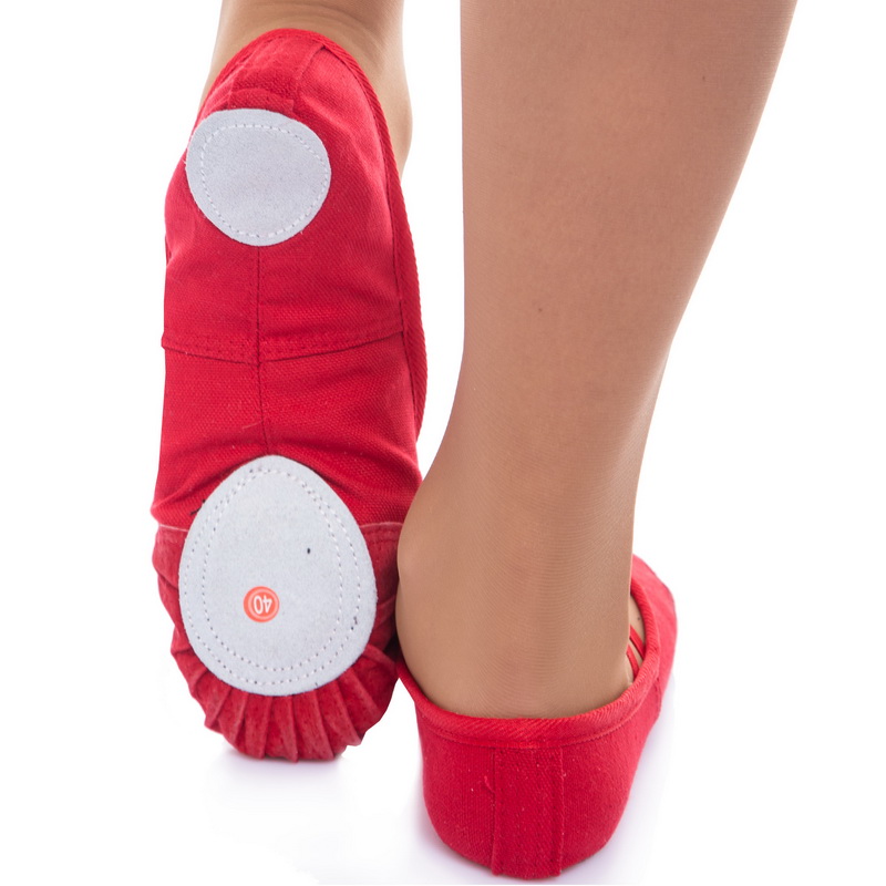 Papuci de balet partea superioară din bumbac roșu, talpă din piele