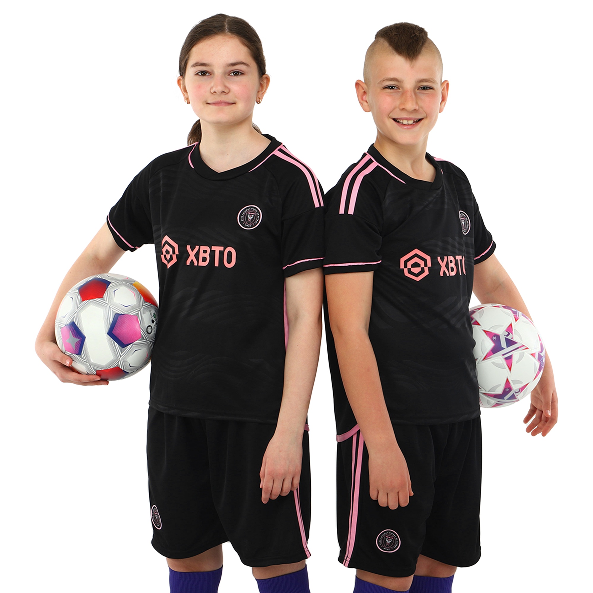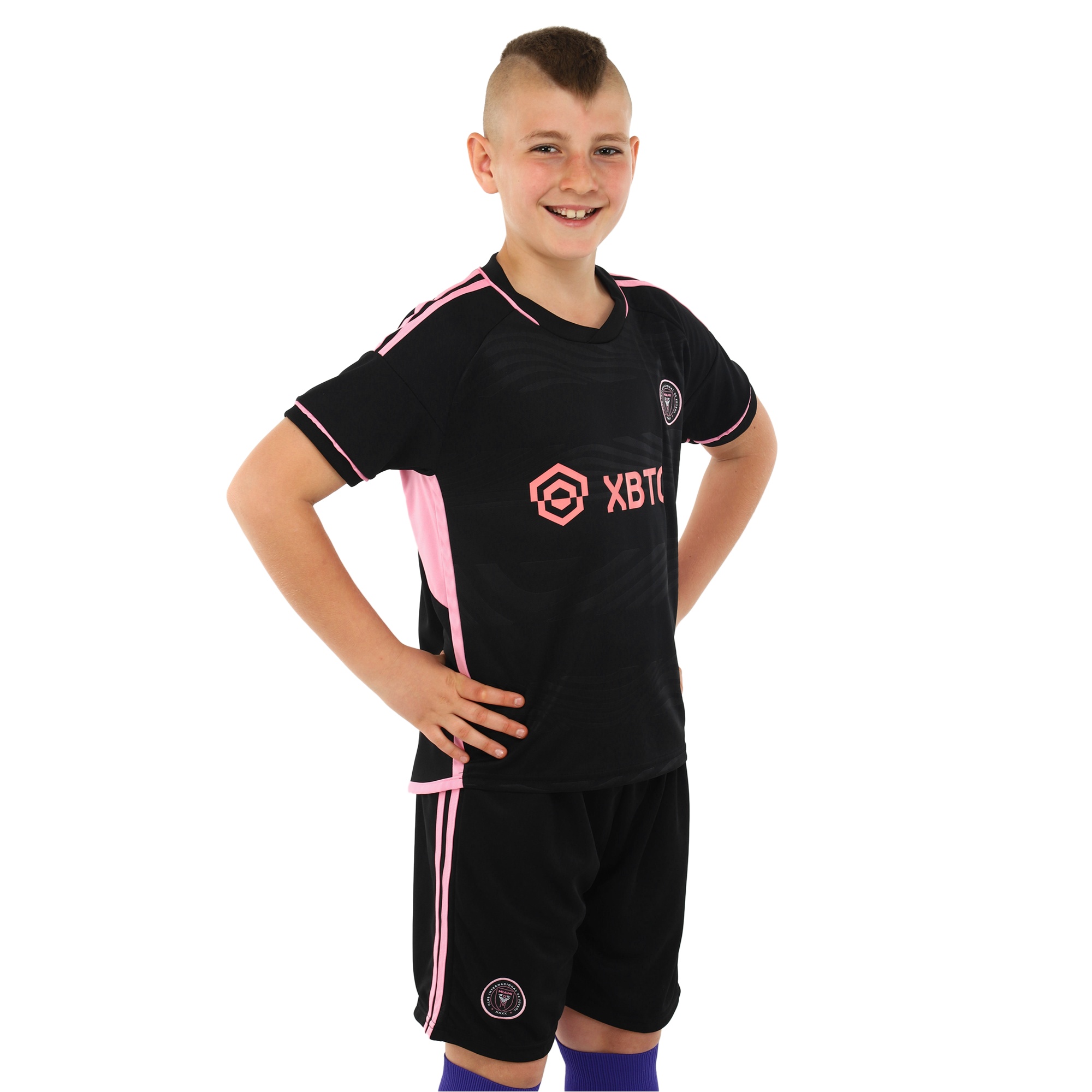 Uniformă de fotbal pentru copii cu simbolurile INTER MIAMI football club guest 2024 (Districtul 20-28, înălțime 110-155 cm, negru). Material: Poliester. Uniforma de fotbal pentru copii INTER MIAMI este realizată în negru, cu simbolurile clubului de fotbal pe uniformă.