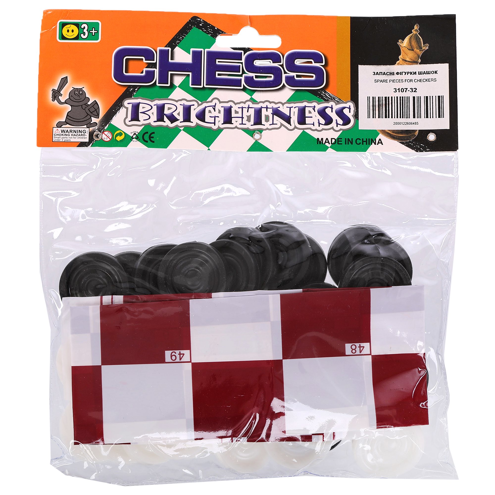 Piese de schimb pentru dame + pânză pentru jocuri. Materialul figurilor este plastic. Diametrul verificatorului: 2,8 cm. Setul include piese pentru dame: Alb-20 bucăți, Negru-20 bucăți, teren de joc: 1 buc.
