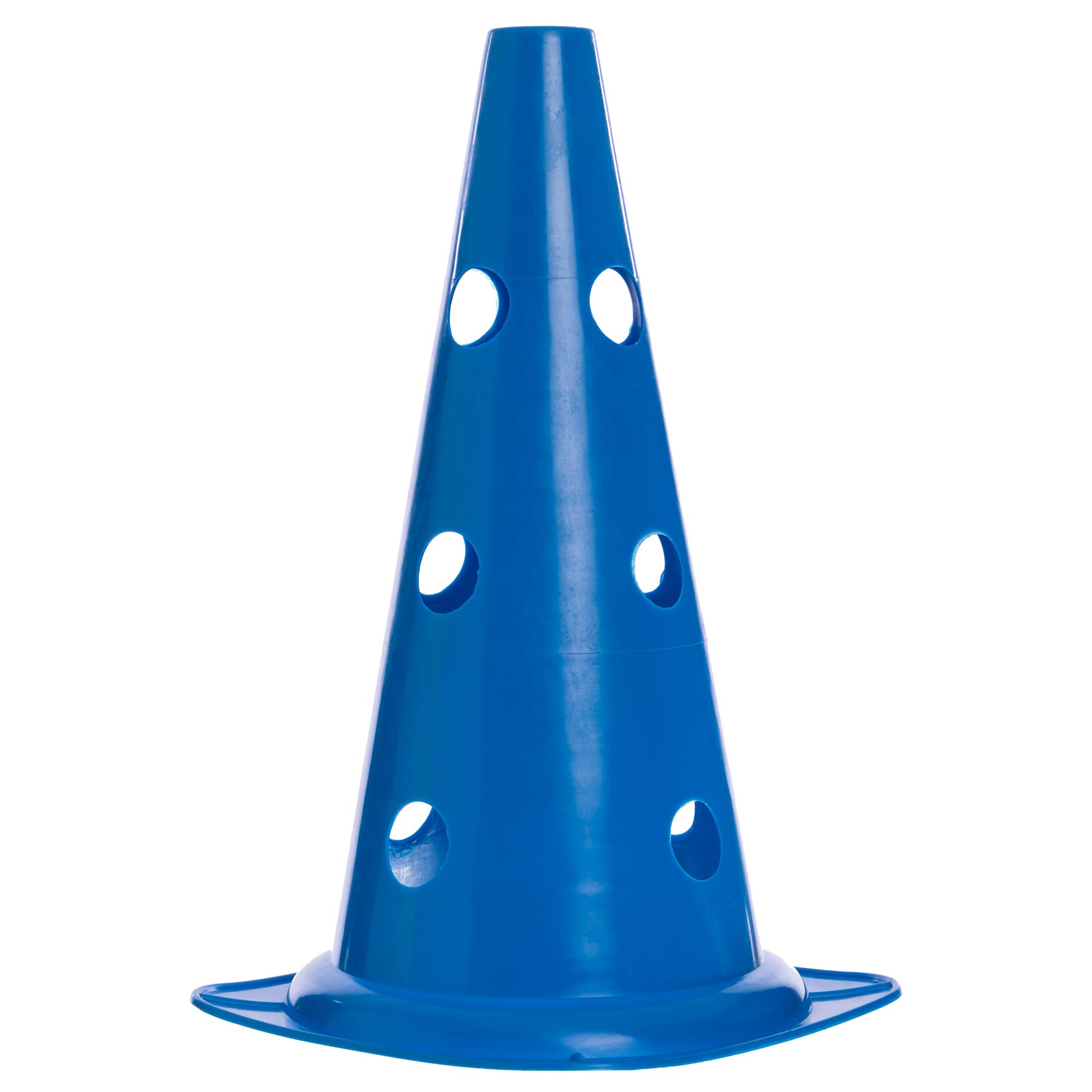 Un con de antrenament cu găuri pentru bara de 38 cm Culori: albastru Material: plastic moale. Înălțime: 38 cm. Culoare: Albastru. Scop: pentru marcarea pistelor sportive și a distanțelor.