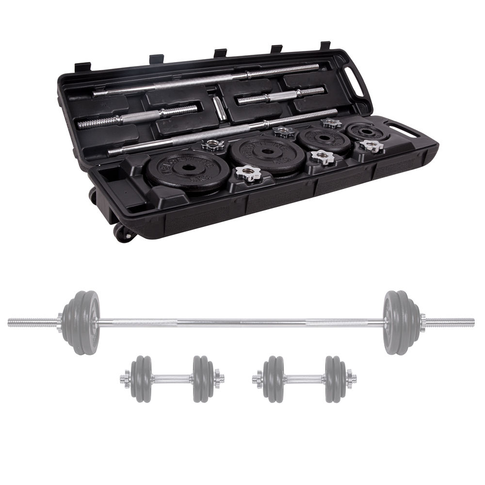 Termeni voucher Описание товара При необходимости штанга разбирается и складывается в специальный футляр. Наборный механизм позволяет подобрать надлежащую нагрузку для различных видов жима. Характеристики Длина грифа: 1500 мм Диаметр грифа: 25 мм Комплектация: Гриф (из двух частей) - 1шт, Ручка гантели - 2шт, Замки-6шт, Блины 0,5кг - 6шт,, Блин 1,25кг - 6шт, Блин 2,5кг - 4шт, Блин 5кг - 4шт, Ящик для хранения - 1шт Материал дисков: сталь Материал грифа: сталь Цвет: черный Замок: гайка Вес: 50 кг
