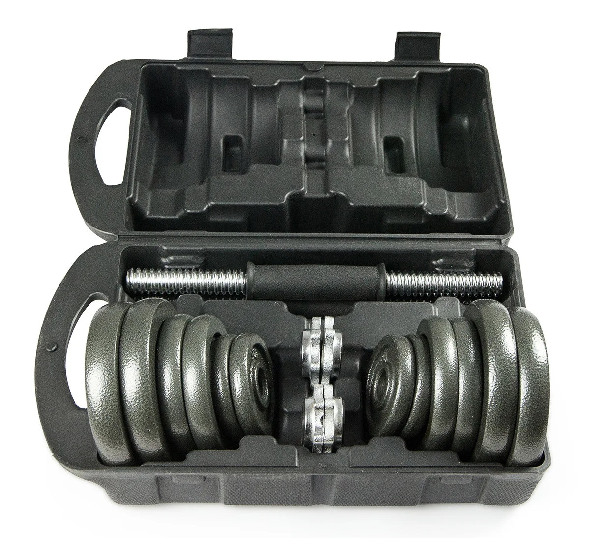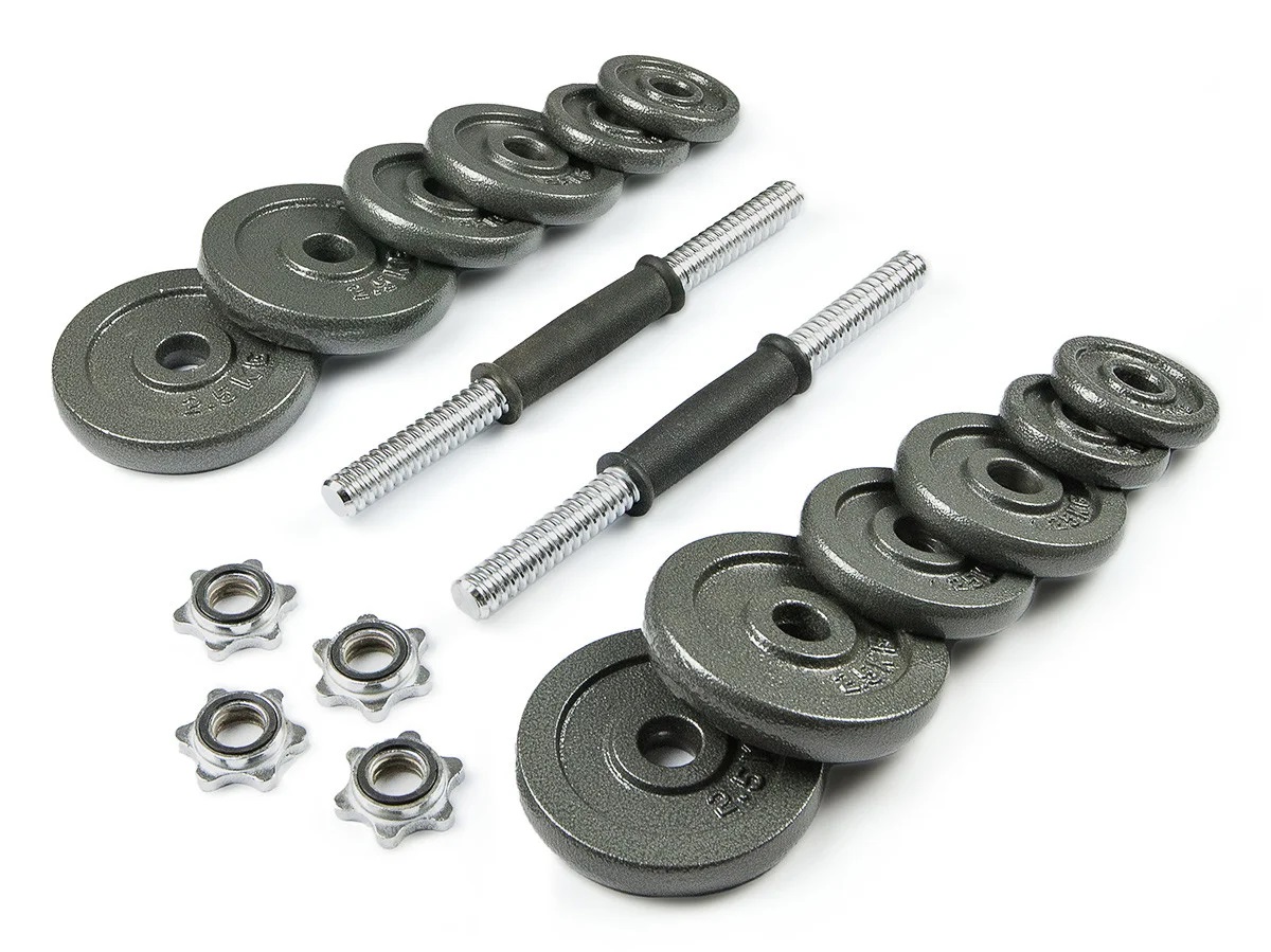 Specificații: gantere: 2 gantere de 10 kg fiecare. Set de clătite: 2,5 kg x 4 buc, 1,25 kg x 4 buc, 0,5 kg x 4 buc. lungimea gâtului: 30cm., greutate 2 buc x 1,5 kg lungimea gâtului de lucru: 11cm. lungimea gâtului în zona clătitei: 11cm. grosimea Clătitei: 2cm. greutatea unei gantere: 10 kg. Material: metal vopsit