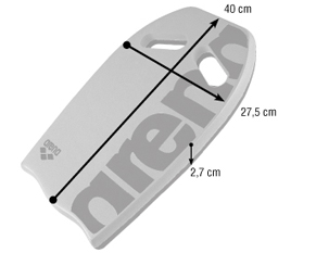 Placa de înot Arena KICKBOARD este un instrument de antrenament ideal pentru îmbunătățirea stabilității corpului și fortifierea picioarelor. Este potrivită și pentru pregătirea pentru îmbunătățirea tehnică a loviturii. Brațele sunt susținute în mod confortabil, în timp ce partea superioară a corpului se află în repaus, iar înotătorul se poate concentra pe antrenarea picioarelor. Orificiile de prindere oferă diferite poziții ale mâinii. Poate fi folosită de înotătorii sportivi și de agrement pentru antrenament de forță sau tehnic.