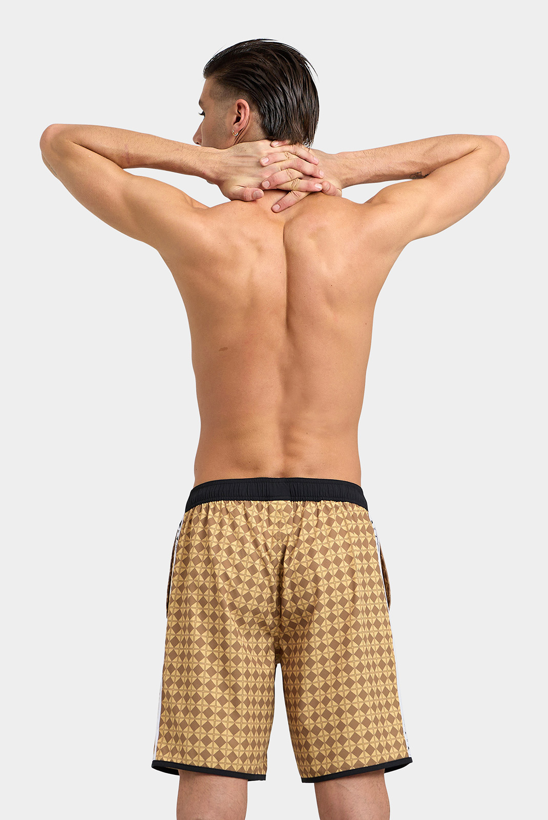Arena în ediție limitată creează colecții exclusive și modele unice în fiecare sezon. Aur-pentru cincizeci, portocaliu - pentru patrimoniu și negru-pentru eleganță. Paleta de culori a capsulei noastre de cincizeci de ani a fost folosită în mod expert în bermuda arena 50th Gold Beach. Aceste trunchiuri de înot pentru bărbați au o nouă imprimare a logo-ului arena din 1973, ornamente negre și patch-uri de echipă în stil retro. Un design versatil care vă poate duce de la surfing la skateboarding. Găsiți-vă potrivirea optimă datorită taliei reglabile cu șnururi. Fabric acest material de costume de baie, realizat dintr-un material ecologic, este 92% poliester reciclat. Această cârpă de înot cu uscare rapidă este perfectă pentru înot, surfing și prinderea razelor solare.