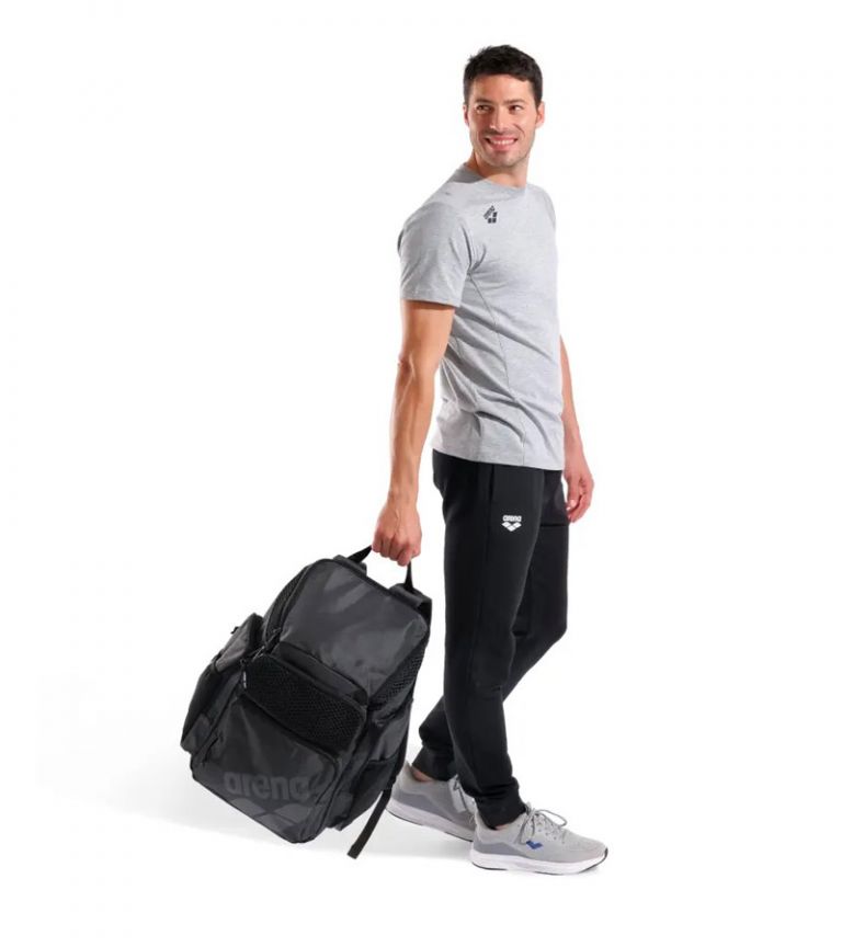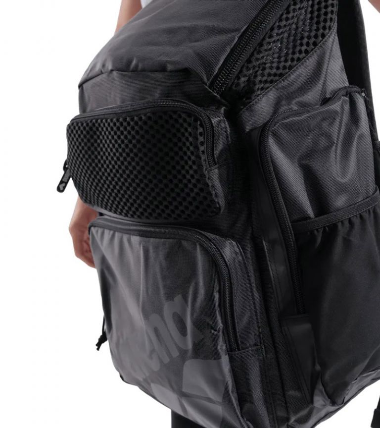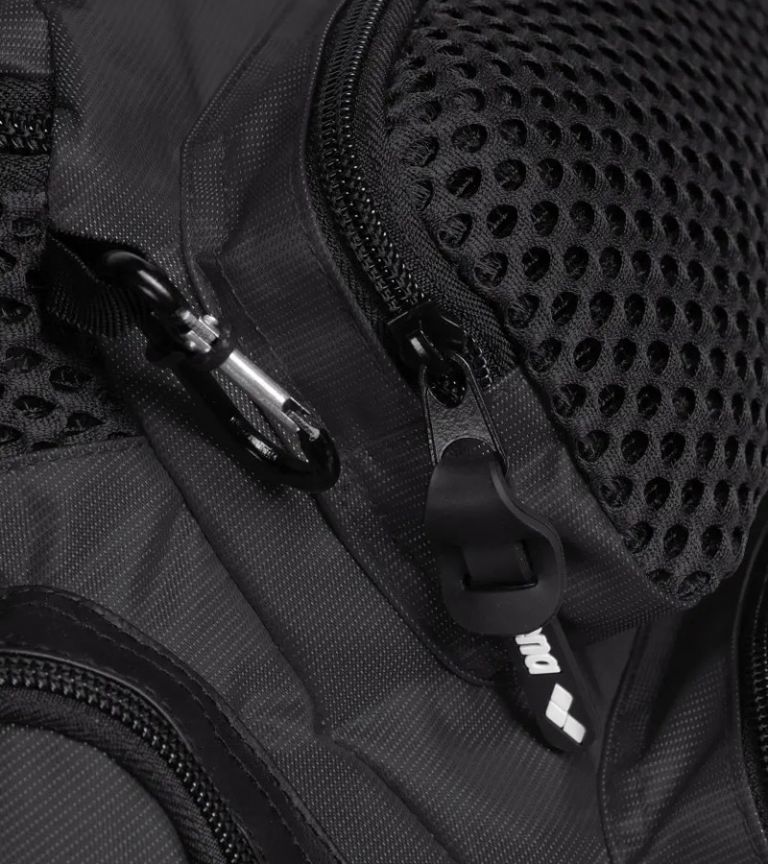 Geanta pentru antrenament de tip rucsac, cu un compartiment central incapator, un buzunar frontal si doua buzunare laterale de mesa. Panoul de spate si partea de jos intarite. Asigura ventilatie optima.