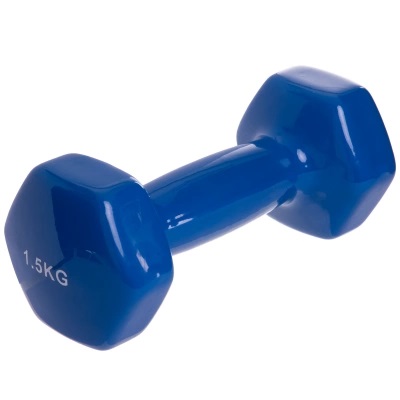 Gantere din oțel Solid într-o coajă de plastic culoare: Albastru. Material de acoperire: vinil. Greutate: 1,5 kg.