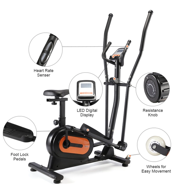 Эллиптический тренажер Arenasport 85013 с вертикальной посадкой, объединяющий в себе степпер, велотренажер и эллипсоид – это идеальный выбор для домашних тренировок. Он подходит как для начинающих, так и для любителей фитнеса, предлагая базовые, но функциональные характеристики, обеспечивающие высокую эффективность занятий.
