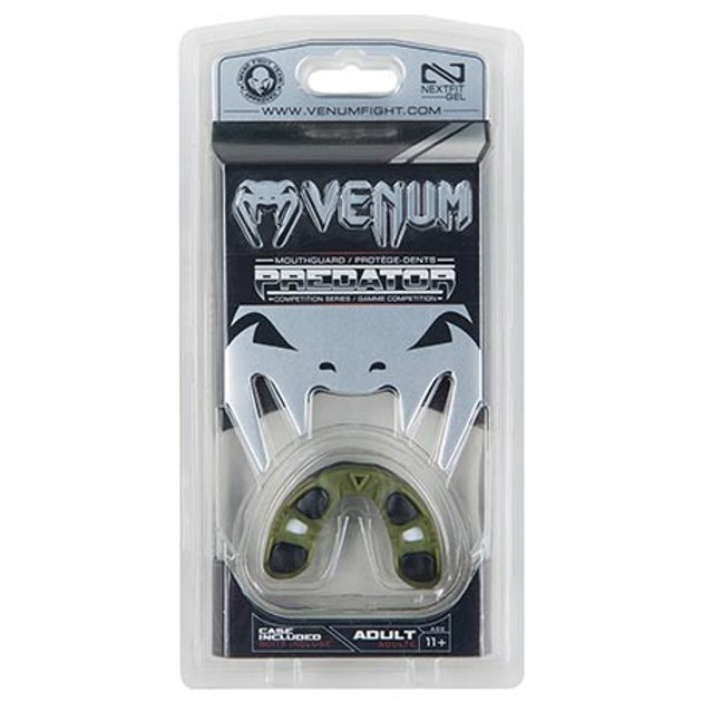 Капа боксерская односторонняя (одночелюстная) двухкомпонентная в футляре VENUM PREDATOR. Материал: термопластик. Цвет: зеленый. Размер: единый (11+).