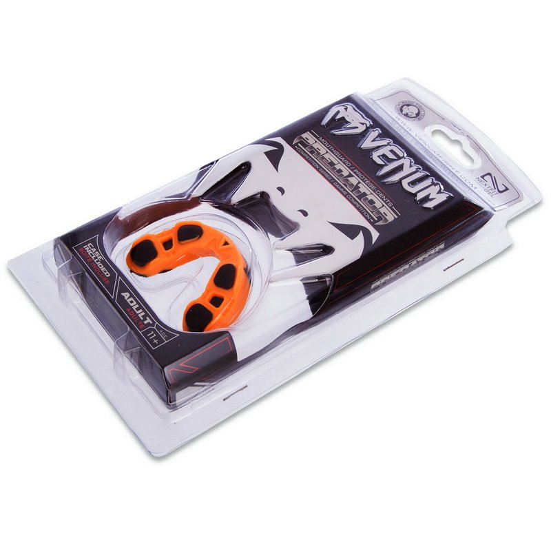 Капа боксерская односторонняя (одночелюстная) двухкомпонентная в футляре VENUM PREDATOR. Материал: термопластик.Цвет: оранжевый. Размер: единый (11+).