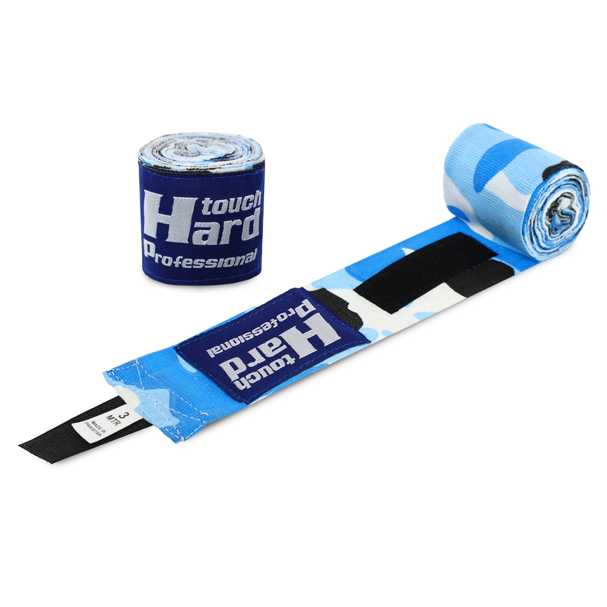 Бинты боксерские (2шт) хлопок с эластаном Hard Touch (l-3м, цвета в ассортименте) Тип: защитная боксерская экипировка Длина: 3 м. Материал: хлопок, эластан. Комплектация: 2 шт. Ширина одного бинта: 5 см Способ фиксации на запястье: с помощью липучки Цвет: синий, Назначение: бокс, ММА. Бинты для бокса незаменимы во время спаррингов и тренировок с грушей. С помощью липучки фиксируются на запястье, обездвиживая его. Защищают кистевой скелет от растяжений, вывихов, трещин, деформаций. Используются в профессиональном и любительском боксе, подходят как начинающим боксерам, так и опытным. Сочетание хлопка и эластана делает бинт гигиеничным, эластичными, практичным в использовании. Бинт плотно и мягко облегает кисть, не сдавливает ее, не вызывает дискомфорт. Хорошо фиксирует суставы и связки. При этом кулак боксера остается подвижным. Эластичные боксерские бинты подходят для многократного использования. Прекрасно держат первоначальную форму даже после длительной эксплуатации.