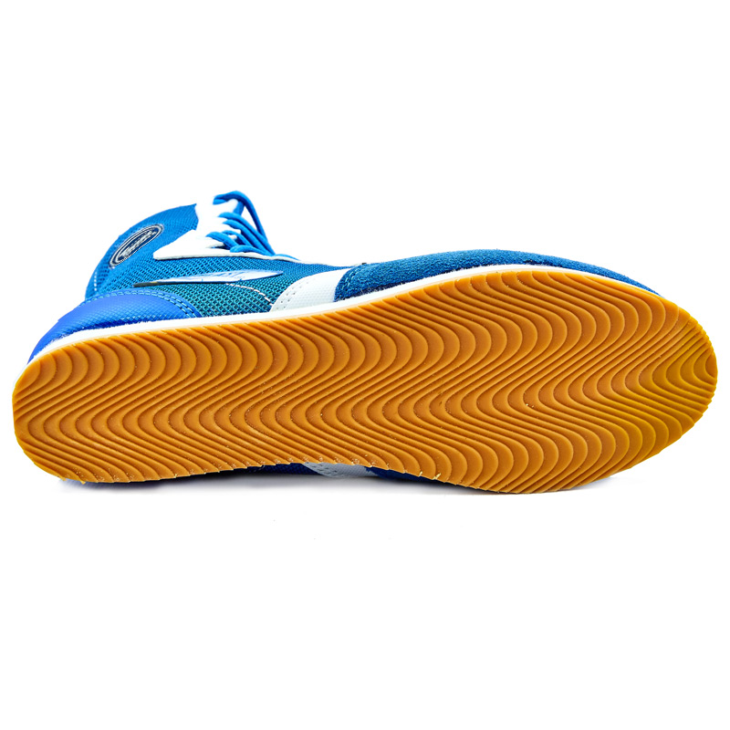 . Обувь окажет непосредственное влияние на скорость и ловкость бойцов. Широкий размерный ряд поможет подобрать боксерки подросткам и взрослым. Верх обуви выполнен из тандема качественного полиэстера и замши. Таким образом модель получается максимально прочной и износостойкой. Высокая шнуровка позволяет посадить изделие по ноге и хорошо зафиксировать голеностоп. Нескользкая резина на подошве обеспечивает прекрасное сцепление с поверхностью и не дает боксерам поскользнуться даже во время резких движений. Преимущества товара: Отличная носкость благодаря качественным современным материалам. Хорошая фиксация голеностопа и защита от вывихов. Широкий размерный ряд и несколько вариантов расцветки.