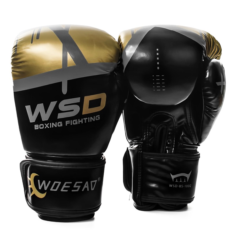 Перчатки боксерские WOESA вес 8-12 OZ, цвет: черно-золотой . Тип: тренировочные Материал: PU. Технология: PU With Injection Mold + firpro/ventilat