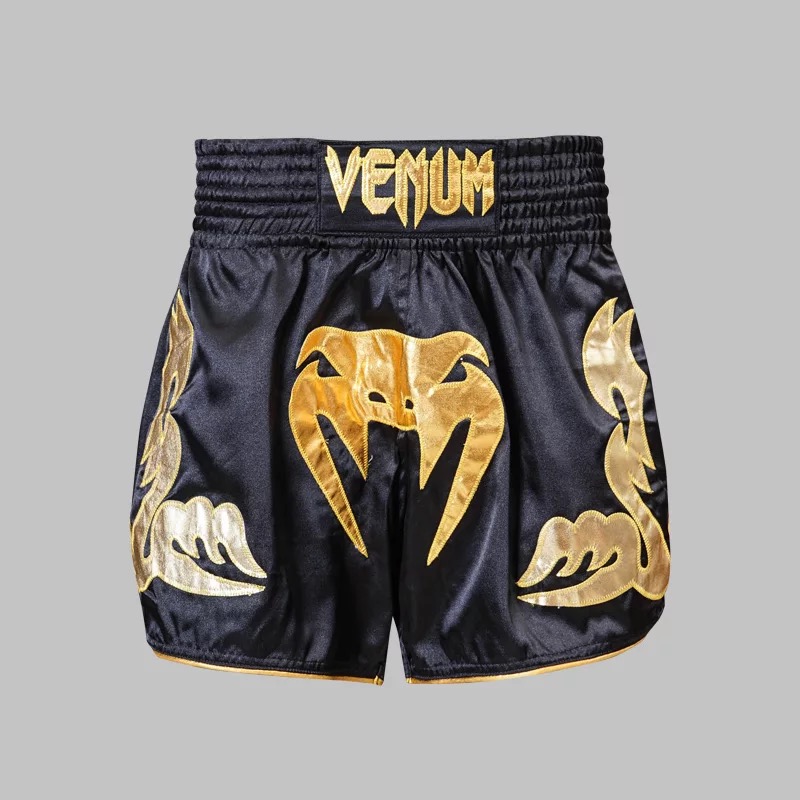 Шорты для тайского бокса и кикбоксинга Venum, Материал: полиэстер. Цвет: черный. Назначение: элемент экипировки бойца в тайском боксе и кикбоксинге.