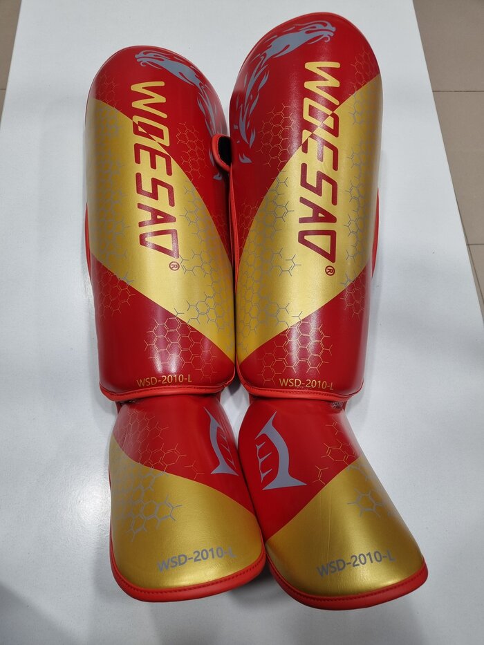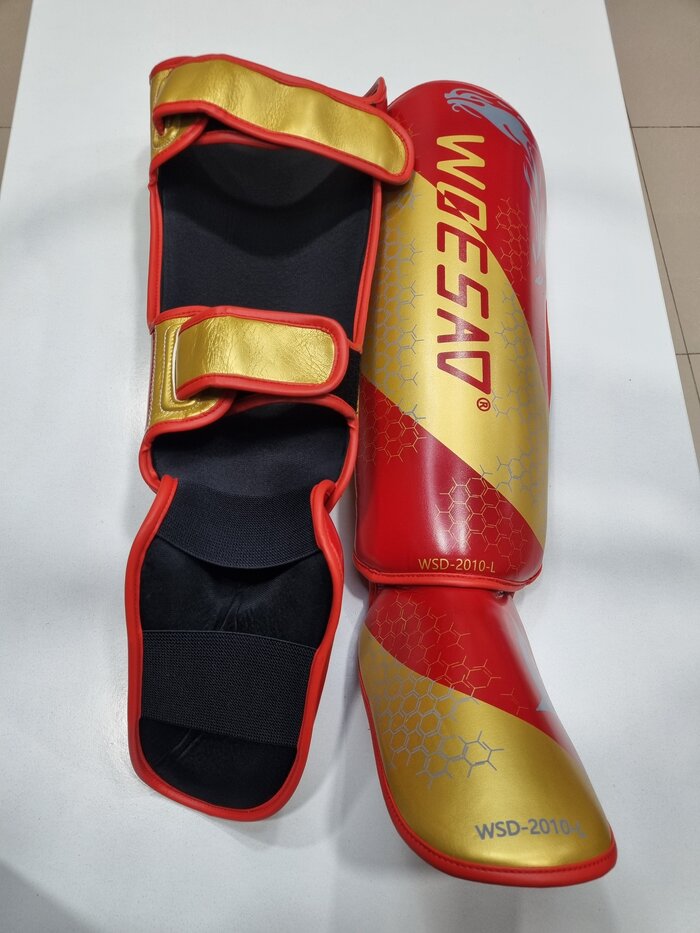 Защитные накладки для голени и стопы от WSD — качественная и надежная экипировка для спортсменов, занимающихся единоборствами. Модель WSD2010 предназначена для тренировок и соревнований по MMA, кикбоксингу и тайскому боксу. Мягкие накладки с наполнителем из многослойного пеноматериала имеют анатомическую форму и обеспечивают не только защиту, но и комфорт во время тренировки. Они изготовлены из полиуретана (искусственной кожи), поэтому способны выдержать регулярные тренировки высокой интенсивности без потери своих свойств. Все швы специально усилены, чтобы защита оставалась целой и могла выдерживать самые мощные удары.
