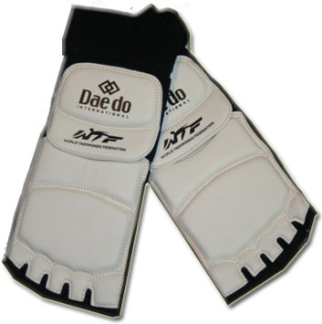 Защита стопы для тхэквондо .Артикул 1320. Материал : полиуретан (PU). Крепление : застёжка-липучка. Цвет : белый. Назначение : предохранение стопы от травм.