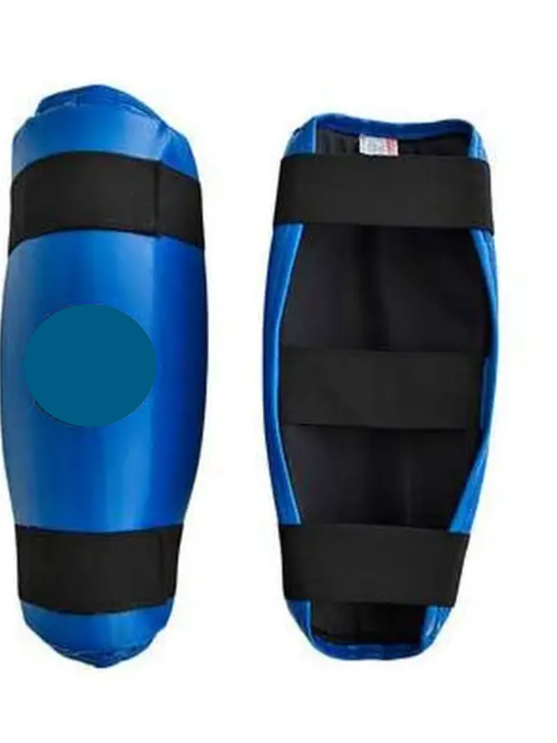 Защита голени для тхэквондо PU WTF, крепление на липучках) Материал: PU, наполнитель - сформированный пенополиуретан. Цвет: синий Крепление на резинках и липучках.