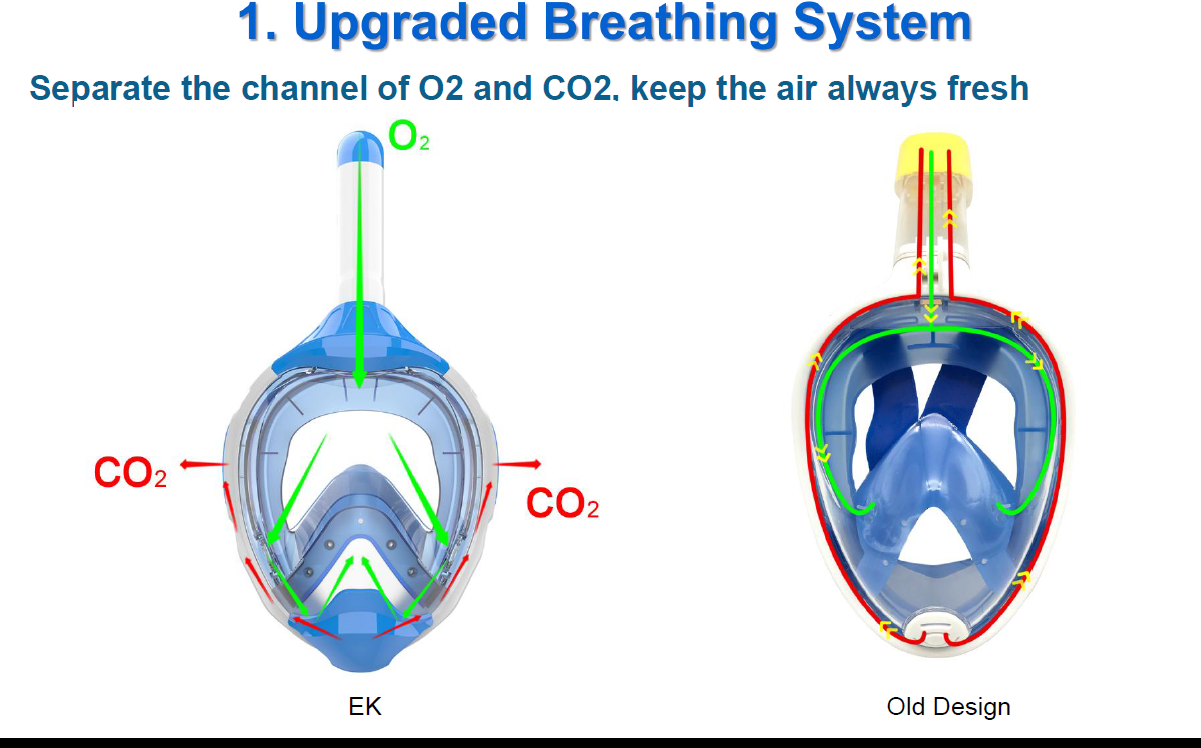 Полнолицевая маска для пляжного отдыха и сноркелинга Waspo серии EK. Обеспечивает широчайший панорамный обзор. Безопасная небьющаяся линза изготовлена из поликарбоната. Встроенная в маску трубка для дыхания позволяет спокойно и естественно дышать носом и ртом, как на суше, а простая в использовании система установки и снятия трубки позволяет легко и быстро складывать трубку для более удобного хранения и транспортировки. Маска полнолицевая Waspo серии EK оснащена запатентованной системой воздухообмена, которая облегчает дыхание и минимизирует остатки углекислого газа, а также системой, которая исключает попадание воды внутрь маски. Наличие двух клапанов в носовой части обтюратора в совокупности с каналами отвода воздуха по периметру маски предотвращают запотевание линзы. Обтюратор маски изготовлен из мягкого силикона, имеет анатомическую форму. Эластичный ремешок на резиновой основе обеспечивает максимальный комфорт и позволяет быстро отрегулировать маску. Для повышения герметичности место соединения трубки с маской имеет резиновое уплотнение. Комплектация: - маска с трубкой 1 шт - беруши 2шт -чехол для транспортировки -инструкция