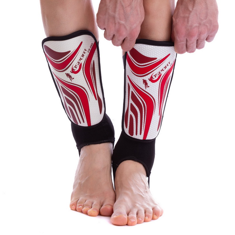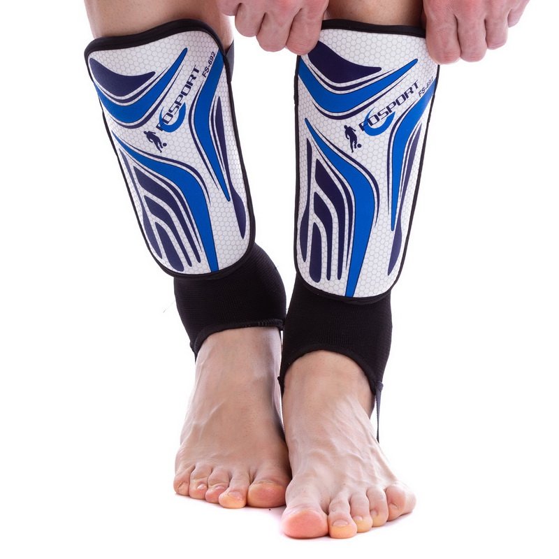 Футбольные щитки с голеностопом обеспечивают максимальную защиту наиболее уязвимых участков ног и суставов. Конструкция защитной экипировки состоит из самих щитков и ремня на застёжке Velcro сверху. Внешняя часть щитка жёсткая и хорошо противостоит ударам. Для амортизации ударов под полипропиленовой накладкой расположен подкладочный слой. В нижней части расположена защита голени - манжета из компрессионного материала. Такие щитки не только обеспечивают более высокую степень защиты по сравнению с обычными накладными, но и не смещаются в процессе игры. При этом они дают полную свободу движений.