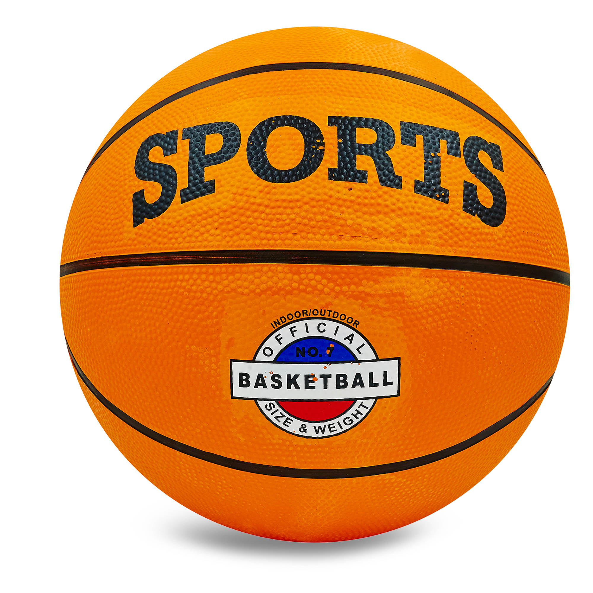 Мяч баскетбольный резиновый №7 SPORT Indoor/Outdoor (резина, бутил, оранжевый) Материал наружного покрытия: резина. Материал камеры: бутил. Длина окружности: 740—780 мм Размер: 7. Цвет: оранжевый.