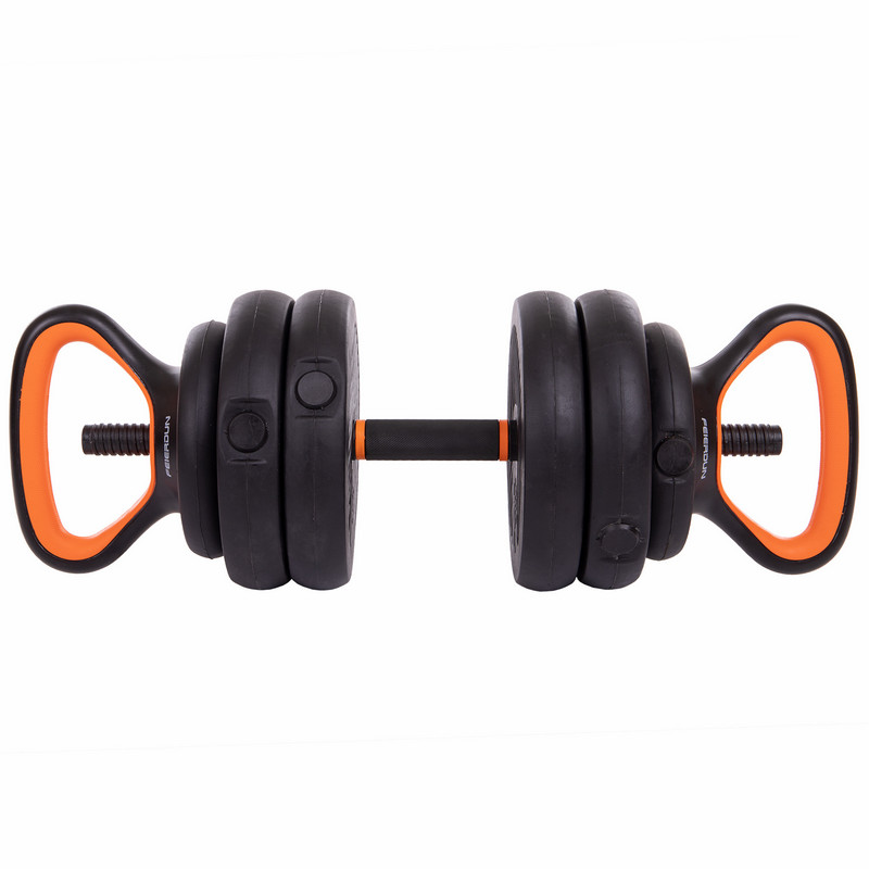 Конструкция 6 в 1 позволяет из одного набора собрать гантели, гирю, штангу, а также использовать упоры для отжиманий и другие вариации. Это обеспечивает невероятную гибкость в тренировочном процессе — от кардио до силовых нагрузок без лишних затрат и места.