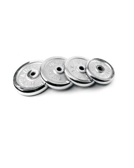 Комплектация: гриф классический прямой d-26 mm L-150cm 5 кг блины(диски) хромированые : 4х7,5 кг, 6х5 кг, замок металлический хром. гайка 2 шт.