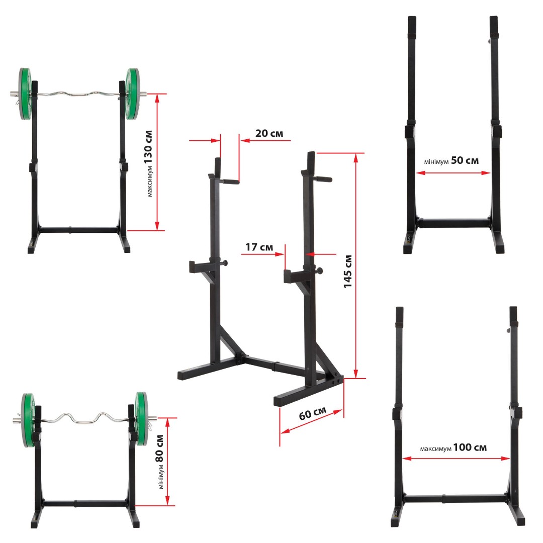 Стойка универсальная под штангу для жима и приседаний с подстраховкой регулируемая