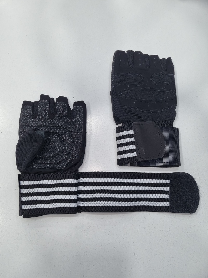 Перчатки атлетические с фиксатором запястья 87106 (PVC, нейлон откр.пальцы, р-р XL-2XL). Цвет: черный