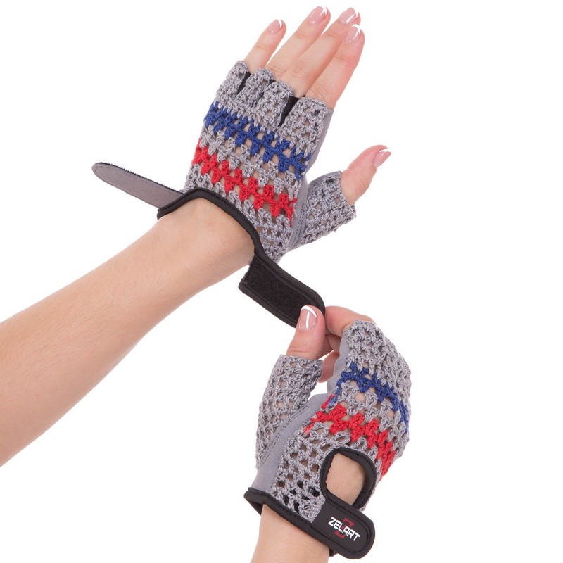 Перчатки ZELART из хлопковой вязки — стильный и практичный аксессуар для тренировок. Перчатки с открытыми пальцами предназначены для защиты кожи ладоней от повреждений и мозолей во время тренировки. Использование перчаток позволяет полностью отказаться от магнезии. Тыльная сторона ладоней в перчатках изготовлена из натурального вязаного материала. Он пропускает воздух и позволяет рукам охлаждаться. Охлаждению способствует конструкция перчаток — пальцы открыты. На ладони использован прочный синтетический материал, который препятствует скольжению рук. Перчатки фиксируются на руках с помощью застежек. Их посадку можно отрегулировать. Преимущества : Универсальные перчатки для женщин, защитят кожу во время аэробных и силовых нагрузок. Плотный материал прекрасно носится и надежно защищает нежную кожу от образования мозолей. У перчаток интересный дизайн и интересная расцветка – вы точно будете выделяться на фоне других спортсменок. Подобрать свой размер можно следующим образом – измерить обхват ладони на уровне костяшек и соотнести полученный результат с таблицей размеров.