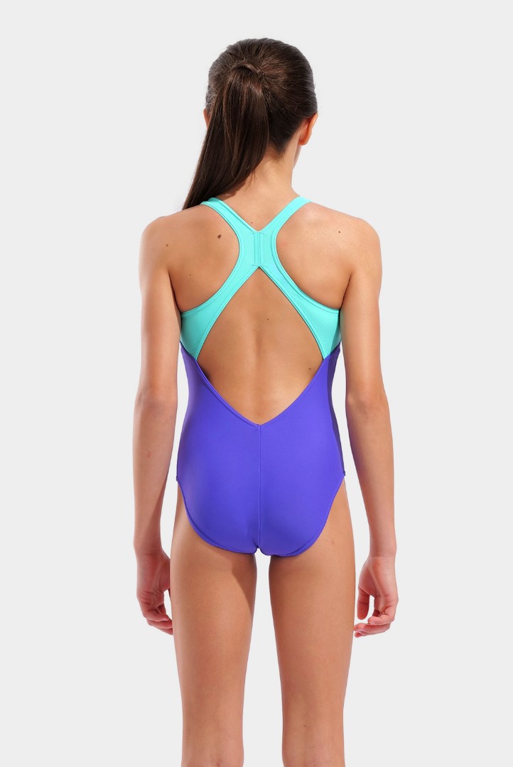 купальник (детск.) arena GRAPHIC SWIMSUIT V BACK Jr Артикул: 010407-880 Коллекция: WA2025 Цвет: indaco-water Состав: 80% Полиамид, 20% эластан. Технологии: MaxFit Eco
