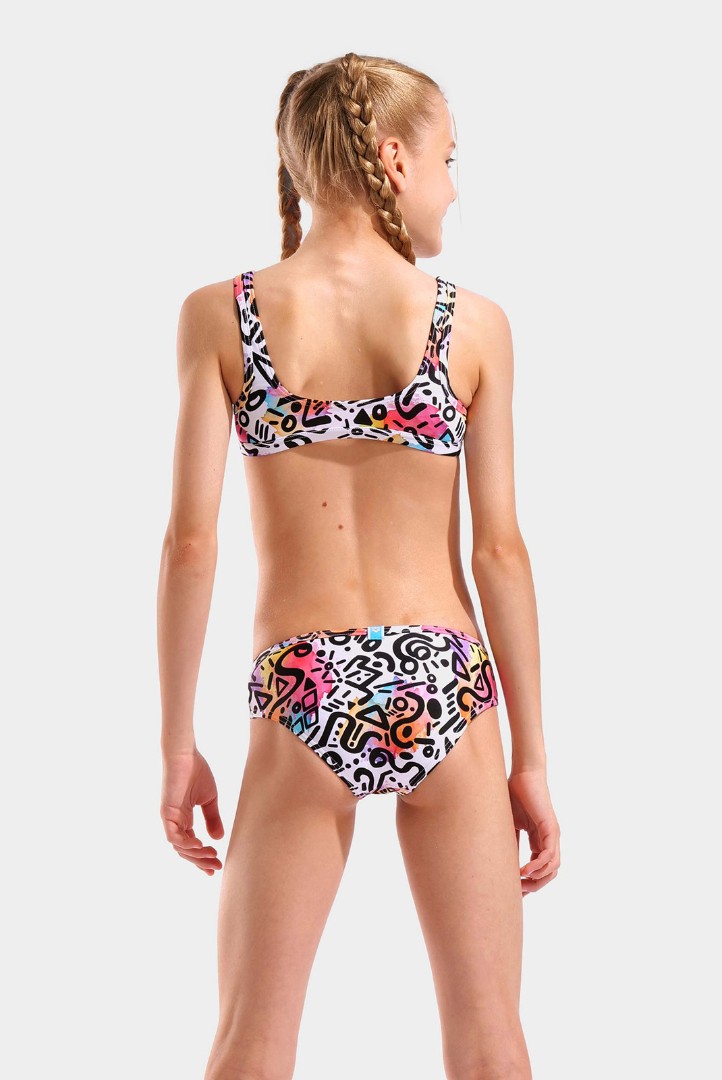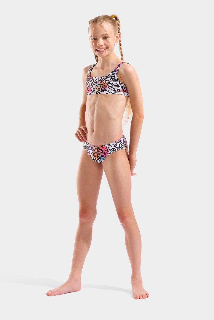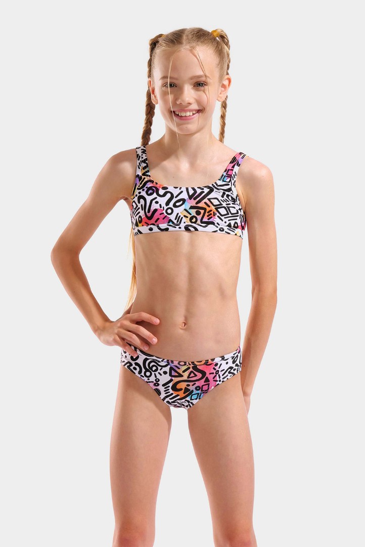 купальник (детск.) arena G WATER PRINT BIKINI BRALETTE Артикул:011031-150 Коллекция: SS2026 Цвет: graffiti Состав:87% переработанный полиамид, 13% эластан