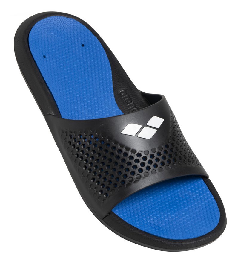 Сланцы Bruno от бренда Arena - очень легкая и удобная мужская модель, ориентированная на походы в бассейн, занятия водными видами спорта, а также пляжный отдых. Конструкция модели предусматривает специальные отверстия для отвода воды, а перфорированный верхний в виде сот гарантирует сухость ваших ног до и после занятий в воде. Подошва обеспечивает отличную амортизацию и сцепление с мокрыми поверхностями. Сланцы выполнены из 100% гипоаллергенных материалов и не содержат ПВХ. Специалисты рекомендуют сланцы Bruno от бренда Arena пловцам для похода в бассейн, а также для отдыха на морском побережье. МАТЕРИАЛЫ: 70% этилвинилацетат, 30% термопластический полиуретан Почему стоит брать? стильные мужские сланцы классический дизайн мягкий и легкий материал дренажные отверстия перфорированный верх подошва не скользит фирменный логотип