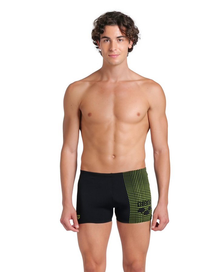плавки arena FOGGY DOTS SWIM SHORT Артикул: 008483-506 Коллекция: SS2025 Цвет: black-artic lime Состав: 100% полиэстр. Ткань MaxLife ECO
