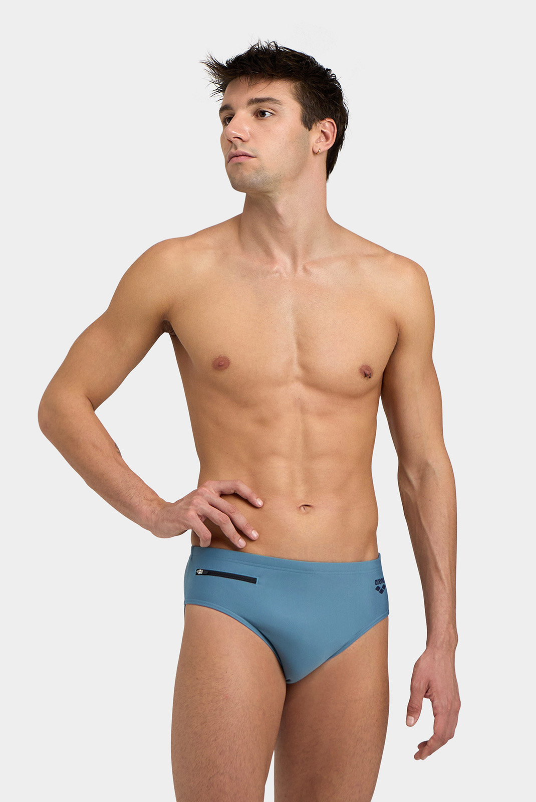 плавки arena ZIP BRIEF 9CM Артикул: 006259-550 Коллекция: SS2024. Цвет: stone grey Состав: 82% переработанный полиэстер, 18% эластан