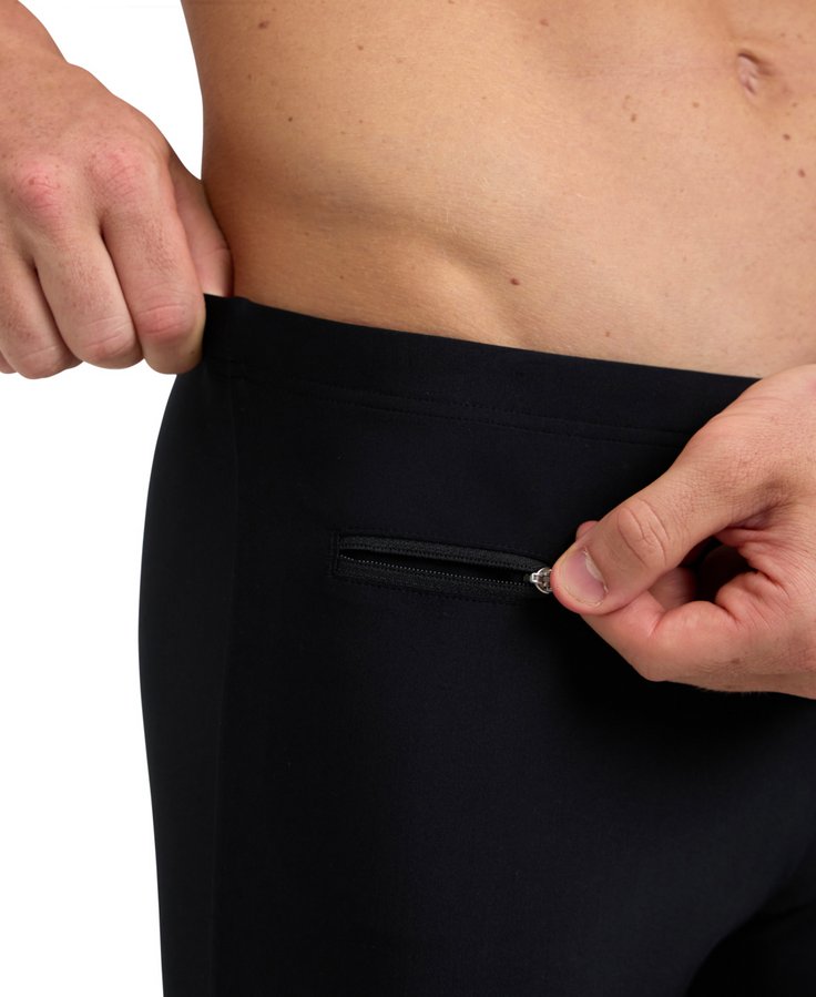 плавки arena ZIP SWIM SHORT Артикул: 006159-500 Коллекция: SS2024. Цвет: black Состав: 82% переработанный полиэстер, 18% эластан