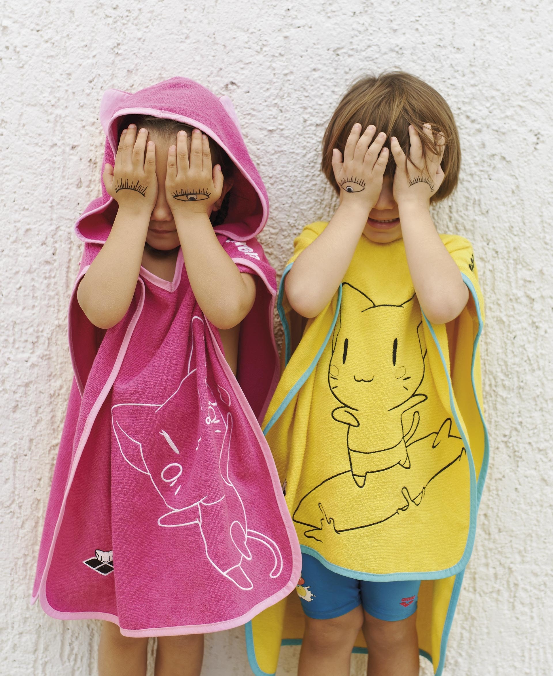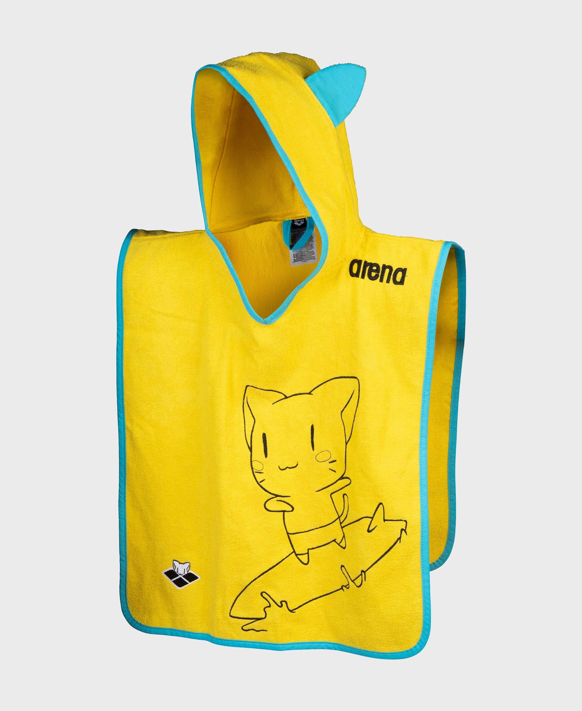 Полотенце-пончо — секретное оружие каждого родителя в бассейне или на пляже. Оно позволяет легко надевать и снимать купальник. Кроме того, он мгновенно высушивает детей с головы до ног, сохраняя их уютными и теплыми. Детское пончо «Друзья» изготовлено из 100% хлопка и украшено изображением котенка. Детям очень нравится капюшон с кошачьими ушками.