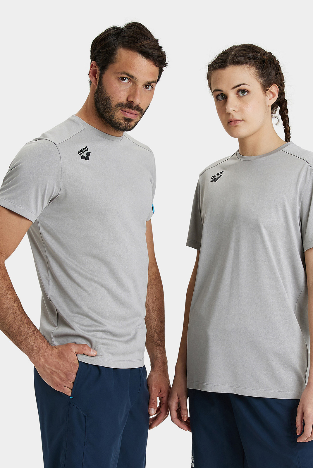 футболка arena TEAM T-SHIRT SOLID Артикул: 004900-550 Коллекция: SS2025 Цвет: medium grey heather Состав:100% полиэстер