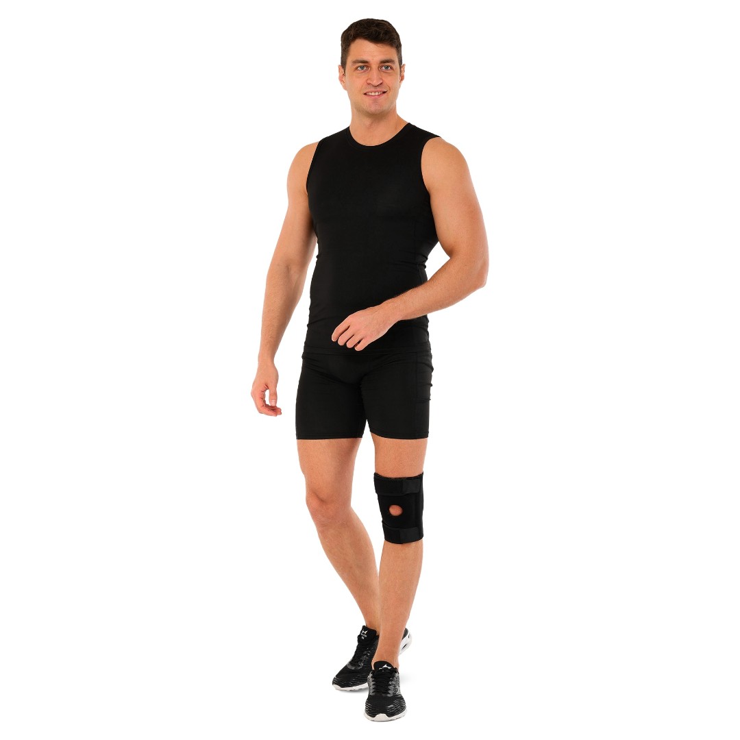 - Создает компрессионный эффект, улучшая кровообращение в области колена. Это способствует более быстрому снятию отеков и ускоряет процесс восстановления после травм или операций.