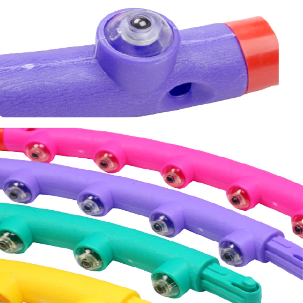 Обруч массажный Hula Hoop – массажер, который оснащен специальными магнитами, поэтому оказывает не только механическое воздействие на проблемные участки, но и активизирует обмен веществ, снижает количество холестерина, делает профилактику тромбообразования. Назначение Обруч – незаменимый тренажер, который поможет вам сделать талию осиной, а мышцы привести в тонус. Особенность данного снаряда – массажные полусферы, которые расположены по внутреннему краю обода. Они обеспечивают приток крови к проблемной зоне, и увеличивают эффективность тренировки. Разумеется, занятия необходимо совмещать с правильным питанием, а также добавить обязательный предварительный разогрев мускулатуры. Если вы расширите комплекс и внесете в него упражнения на другие группы мышц, то стройное тело вам гарантировано! А еще обруч – это щадящий вид кардио для людей с избыточным весом, с ним не нужно прыгать, бегать и перегружать суставы. Описание Обруч представляет собой кольцо из пластика, собранное из нескольких сегментов. Чтобы не испытывать сложностей при сборке, соседние элементы окрашены в разные цвета. Конструкция достаточно надежная, поскольку все элементы соединяются между собой специальными прочными замками-фиксаторами. За массажный эффект отвечает ряд полусфер, расположенных по внутренней стороне снаряда. Они обеспечивают равномерное воздействие на талию, бока, спину и бедра. Массажные элементы оснащены магнитами, которые стимулируют обмен веществ и корректируют работу внутренних органов, а также повышают иммунитет. Использование Чтобы обруч не травмировал кожу, надевайте плотную футболку или майку, которая хорошо облегает тело и не скользит. Во время тренировки работают косые и прямые мышцы живота, формируется красивый пресс. Для того чтобы результат был виден, начните тренироваться с 5-10 минут 3 раза в неделю и доведите общенедельную длительность занятий примерно до 200 минут (по полчаса ежедневно). Преимущества : По всему периметру обруча расположены массажные полусферы, которые усиливают эффект от тренировки. Снаряд легко разобрать на сегменты и компактно сложить для хранения. Диаметр и вес обруча оптимален для взрослого человека.