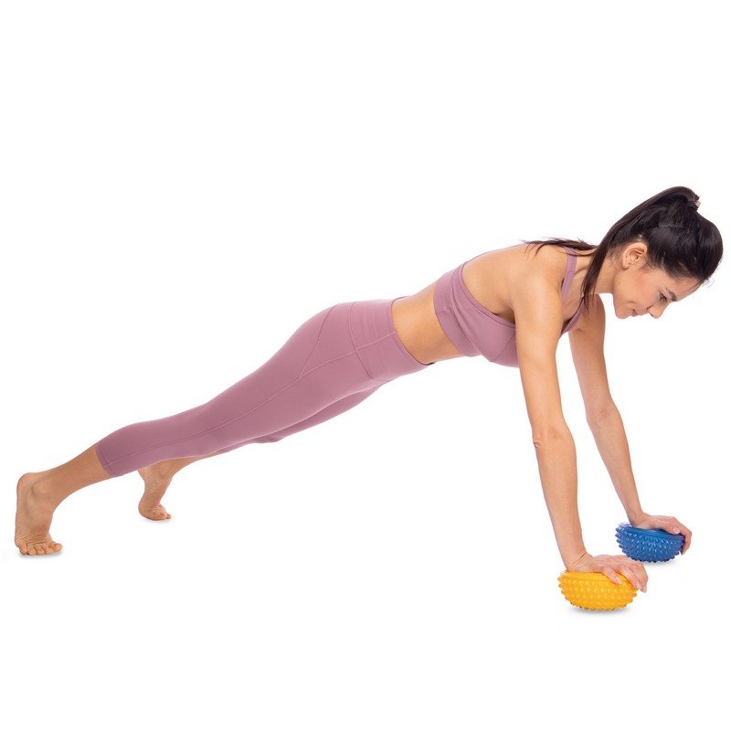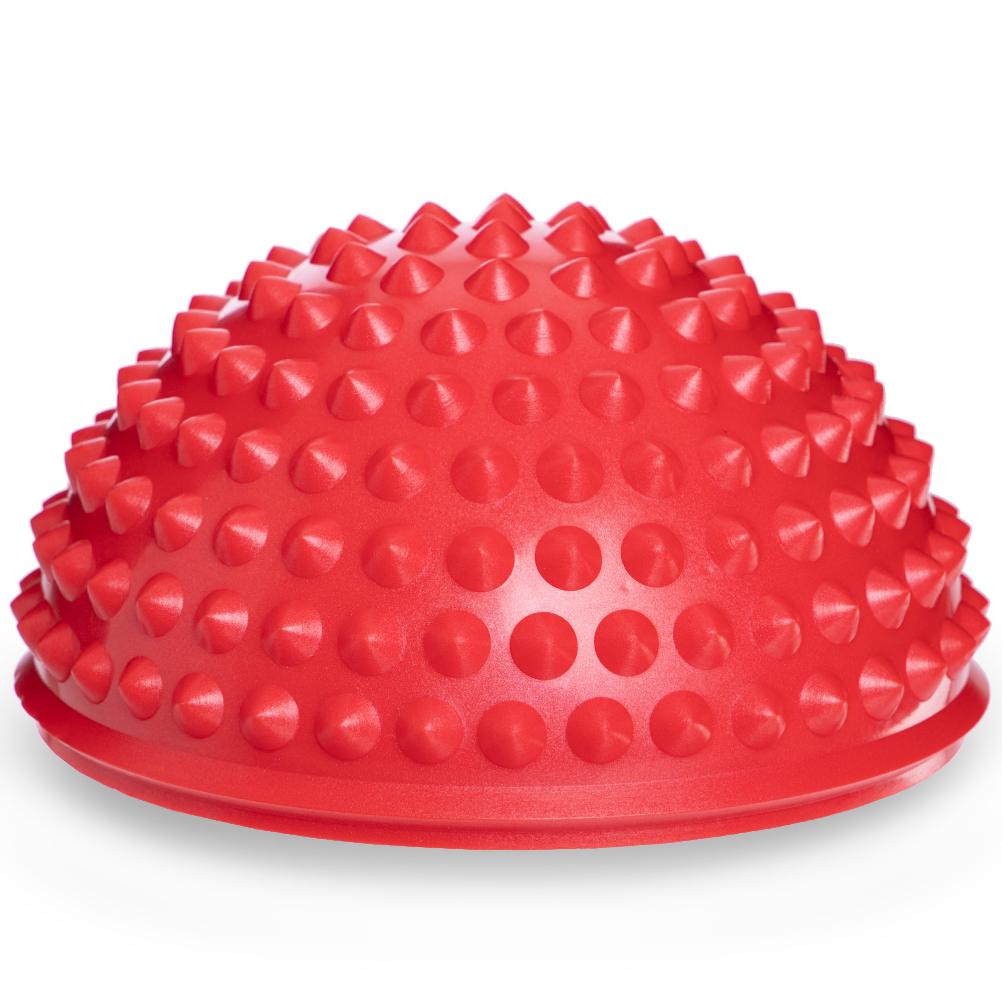 . Полусфера за счёт своей жёсткости создаёт надёжное основание и позволяет более разносторонне выполнять классические упражнения из арсенала баланс-аэробики, добиваясь от них максимальной отдачи. Если вы хотите сделать своё тело максимально функциональным, то следует уделить внимание развитию чувства равновесия. Добавьте в тренировочный комплекс упражнения с полусферой массажной балансировочной Balance . Назначение Тренировки с балансировочной полусферой помогают улучшить динамичное равновесие и координацию движений, одновременно обеспечивая тренировку мышц верха и низа тела. Заниматься можно и с одной полусферой, однако для максимальной эффективности лучше иметь по одной под каждую руку/ногу. С ними можно выполнять как статичные, так и подвижные упражнения. Размещая их купольной стороной вверх или вниз, можно менять уровень сложности тренировок. При этом массажные шипы стимулируют кровоток и благотворно влияют на нервные окончания. Разноцветные и яркие, они идеально подходят для использования в детских садах и школах, позволяя детям тренировать равновесие и координацию в игровой форме. В ортопедической терапии применяются для укрепления ног и ступней. Спортсмены с разным уровнем физической подготовки могут их использовать в тренажёрном зале для разминки или дома (в командировке), как способ поддержать себя в форме. Описание Балансировочная полусфера изготовлена из высококачественного, экологически безопасного поливинилхлорида (PVC), повышенной прочности и упругости. Шипы на поверхности предназначены для создания массажного эффекта. Дно с противоскользящими концентрическими кольцами обеспечивает неподвижность снаряда в момент выполнения упражнений. Полусфера заполняется воздухом при помощи обычного спортивного насоса для мячей, для этого служит игольчатый клапан. С его помощью можно также регулировать давление, тем самым варьируя сложность выполнения упражнений – чем плотнее накачан снаряд, тем труднее удерживать равновесие. Преимущества : Прочные качественные материалы гарантируют комфортное, безопасное использование. Легкая и компактная, она позволяет тренироваться в любом месте – спортзал, гостиничный номер, квартира. Подходит для детей и взрослых, а так же спортсменов различной квалификации.